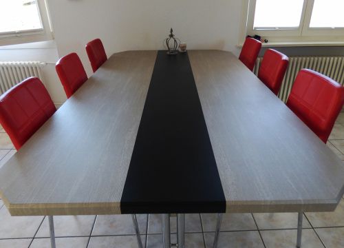 Tresentablar im Rost-Look und einzelne Abdeckung in schwarz matt gehalten um Spannung einzubringen